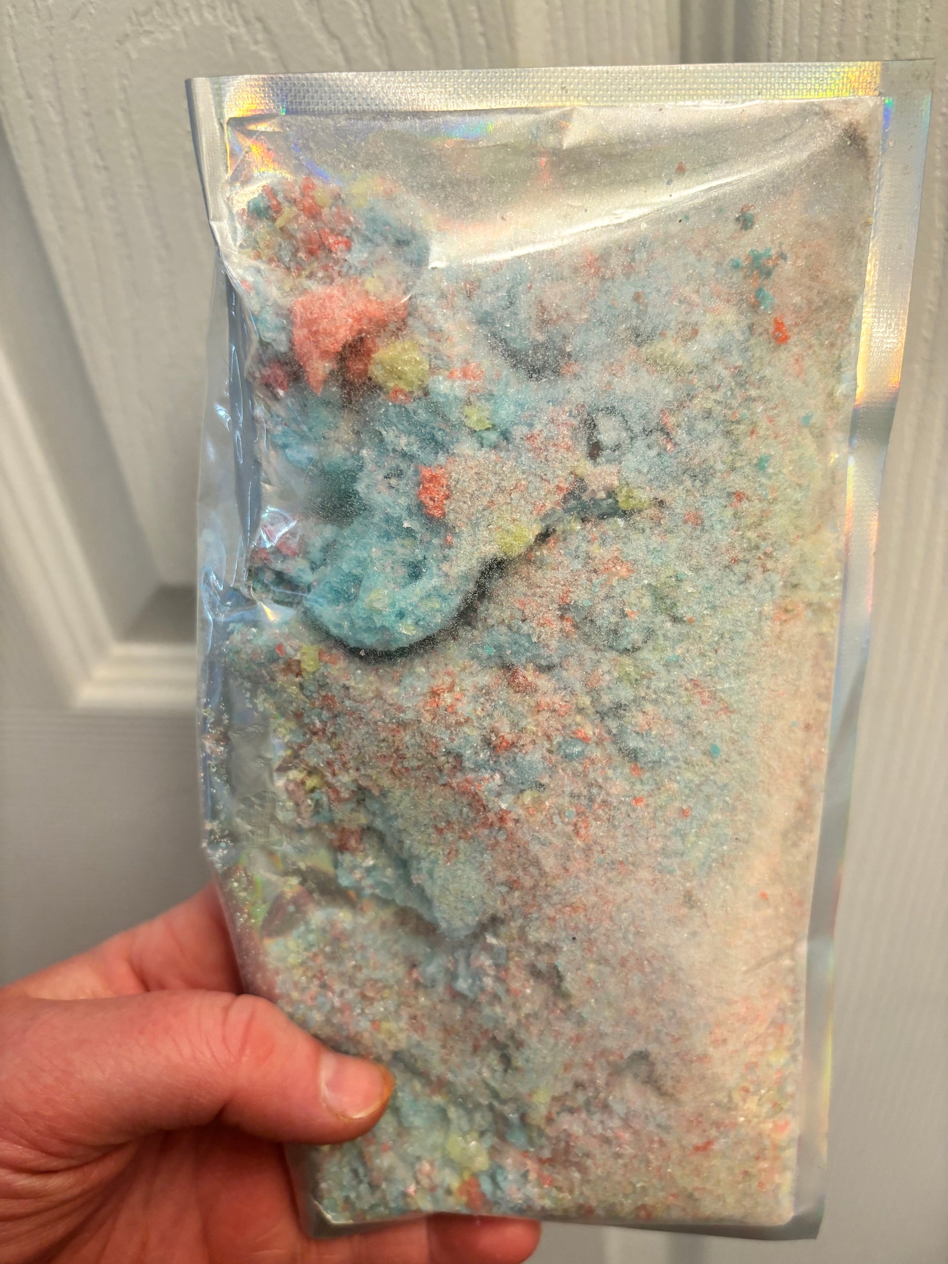 All the yummy “dust “ from the Jolly Ranchers. At his dust can be used for a million different things!!! It is legitimate dust, there are NO whole candy pieces in these bags. You will get approximately 1/2 of an 10x13 Mylar bag.